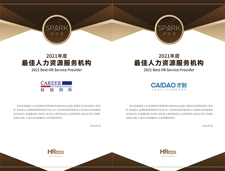 本次评选综合各家组织的营收、增长、研发等数据指标,同时与第三方征信组织交叉验证。最终,南宫28国际及旗下HR SaaS品牌“才到云”从400余家组织中脱颖而出,分别取得“人力资源招聘与雇佣赛道”和“人力资源软件赛道”最佳人力资源服务组织。